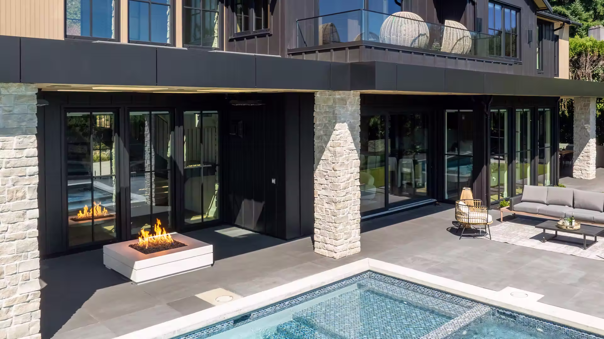 All our foundation series firepits have 84″ required clearance to overhead combustibles, measured from the top of the firepit.