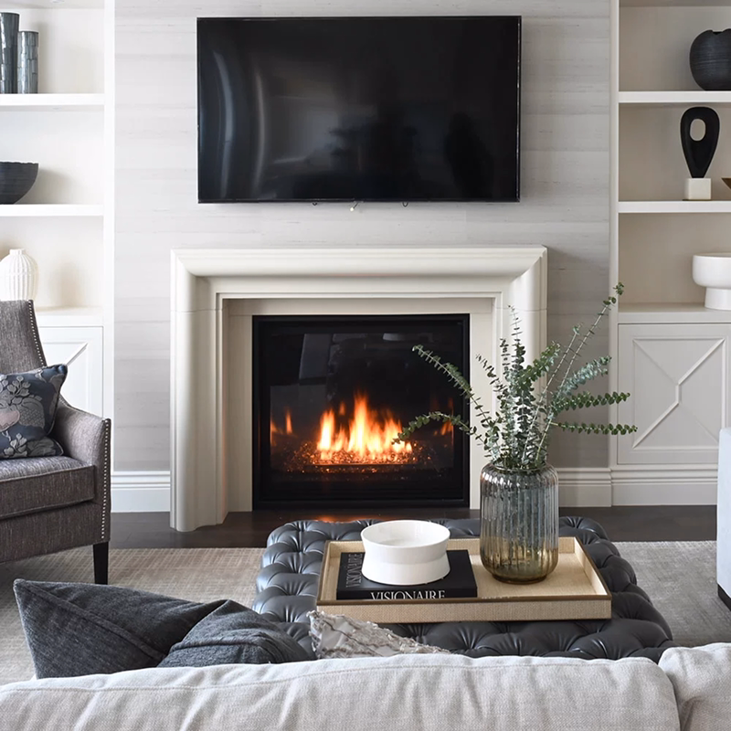 This surround is custom-made to your exact dimensional requirements. We work with you to ensure a perfect fit for your fireplace and living space. Our design team is available to help determine the best size of surround for your space.