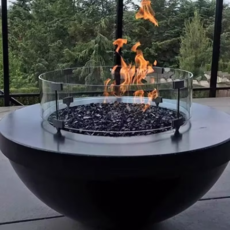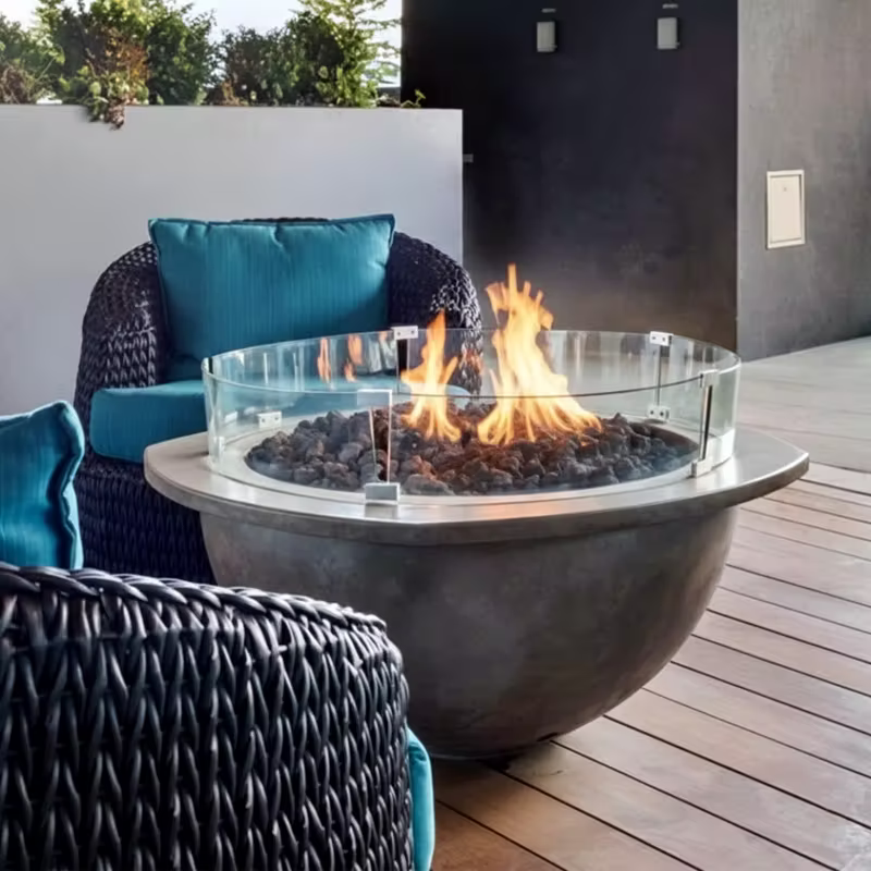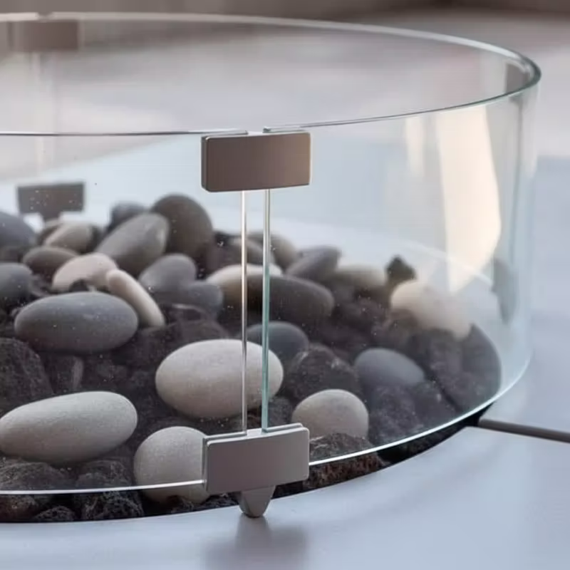 Glass wind guards not only add a layer of protection between the flame, wind, little hands, pets, and debris, but also look beautiful with the reflection of the dancing flame on your gas fire pit table.