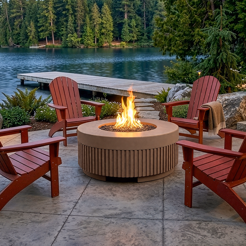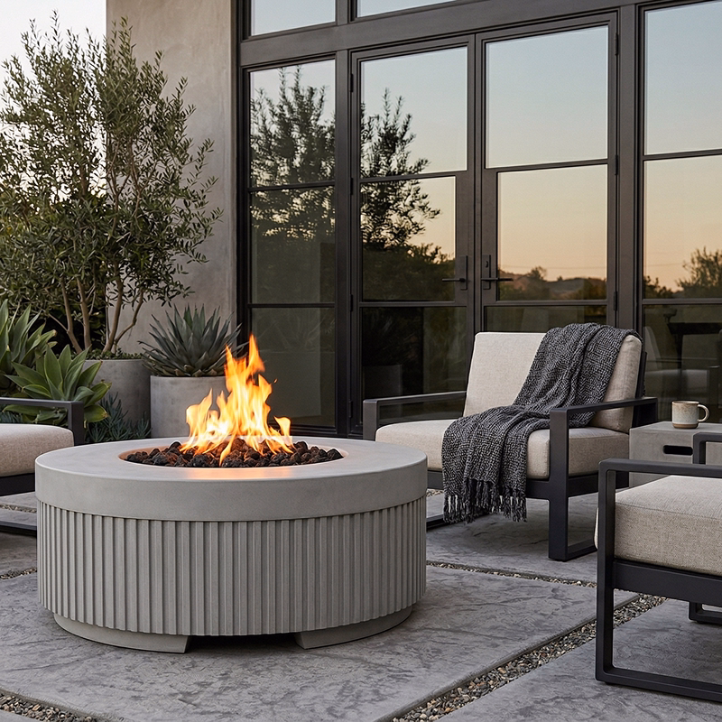 Built for real outdoor living, every DreamCast fire pit features genuine American brass burners and a 5-year concrete warranty. Our proprietary GFRC (Glass Fiber Reinforced Concrete) is reinforced with AR (Alkali-Resistant) glass fibers for added flexural strength—helping the concrete handle heat exposure and freeze-thaw cycles without cracking. We also incorporate strength-boosting pozzolans (such as fly ash) to improve durability while reducing environmental impact. The result: a fire pit that performs beautifully, season after season.
